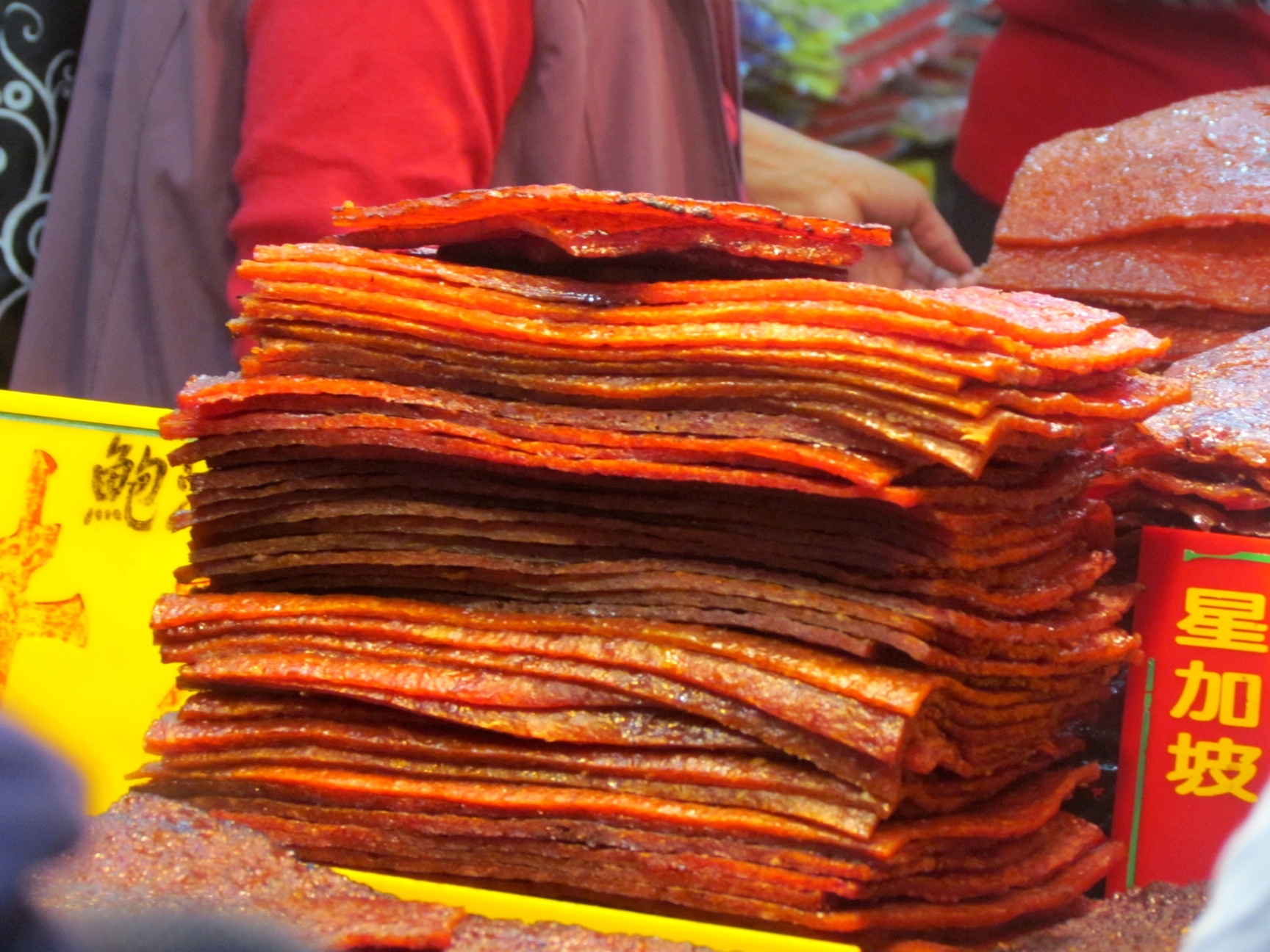 It's a sweet or spicy dried bbq pork (or beef). Quite yummi.